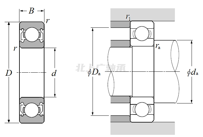 | 單列向心球軸承 - 可拆卸雙面防塵蓋 - 尺寸 | |