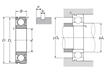 | 單列向心球軸承 - 單面密封(非接觸式橡膠密封),帶卡環(huán)槽 - 尺寸 | |