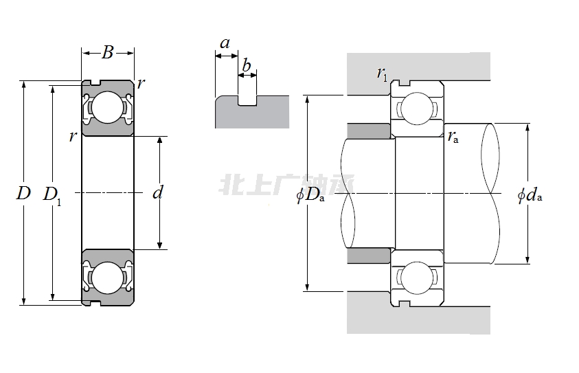 | 單列向心球軸承 - 雙面帶防塵蓋,帶卡環(huán)槽 - 尺寸 | |