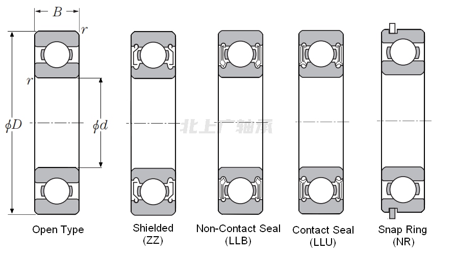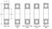 | 單列向心球軸承 - 雙面密封(非接觸式橡膠密封) - 尺寸 | |