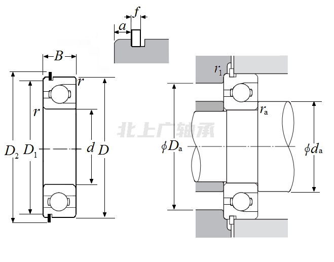 前綴列表:【BL:深溝球軸承和圓柱滾子軸承間的過渡軸承】,后綴列表:【NR:外圈有止動槽和止動環,單側密封時設在密封的另一側】