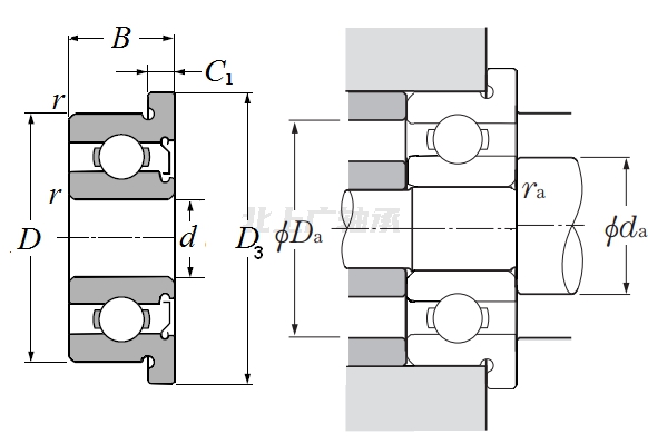 前綴列表:【FL:外圈帶法蘭】,后綴列表:【Z:單面帶壓制鋼板防塵蓋】