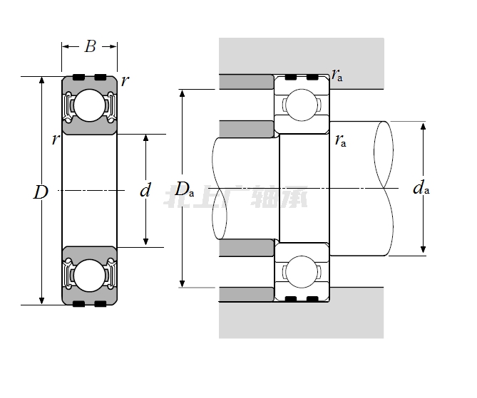 | 膨脹補償軸承 - 雙面密封(接觸式橡膠密封) - 尺寸 | |