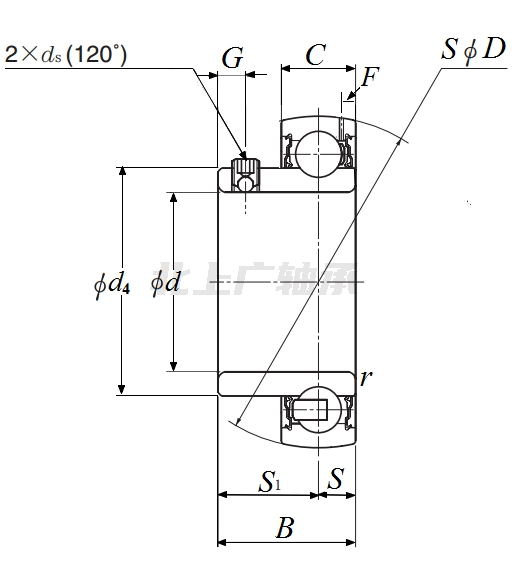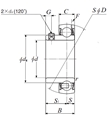 前綴列表:【A-:潤滑孔設在鎖緊設備的另一側】【AR:AR 系列外球面球軸承,帶止動螺釘】,后綴列表:【D1:帶潤滑油孔】