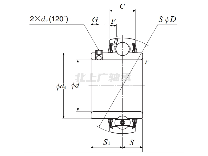 前綴列表:【S:不銹鋼材質】【U:外球面球軸承】【C:內圈內孔為圓柱孔,帶止動螺釘】