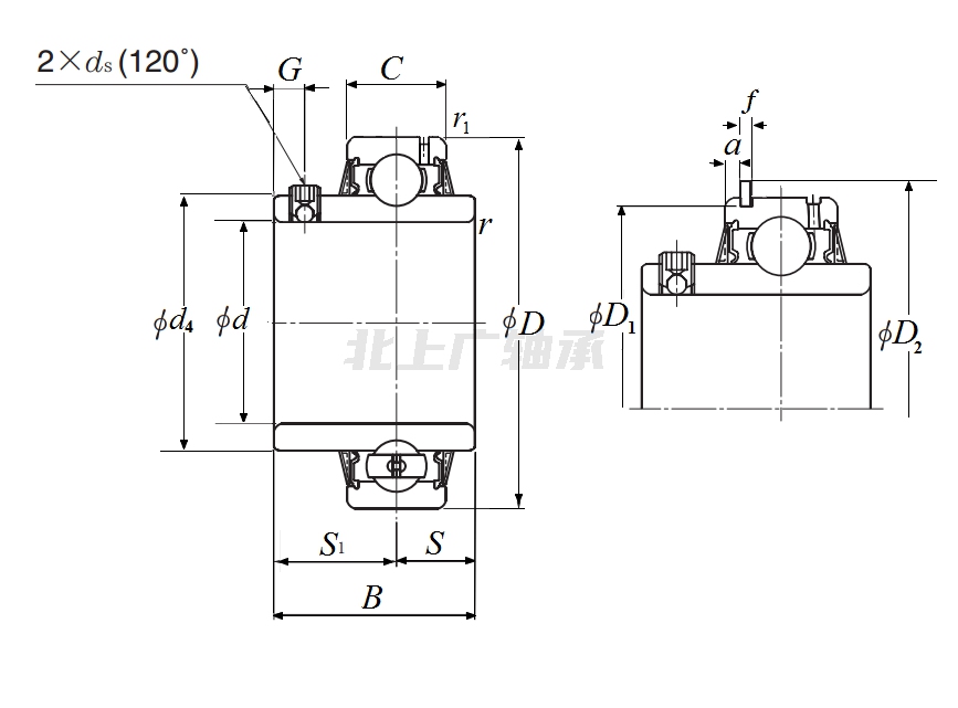 前綴列表:【U:外球面球軸承】【C:內(nèi)圈內(nèi)孔為圓柱孔,帶止動(dòng)螺釘】【S:外圈外表面為圓柱形】,后綴列表:【L:內(nèi)部設(shè)計(jì)變更】【D1:帶潤(rùn)滑油孔】【N:帶止動(dòng)槽】