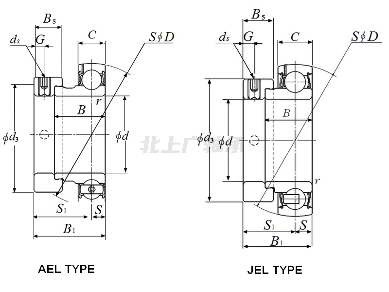 前綴列表:【JEL:JL 系列外球面球軸承 + EL 偏心套圈】
