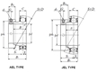| 帶座軸承,帶偏心鎖環,窄內圈 - 球面外圈 - 尺寸 | |