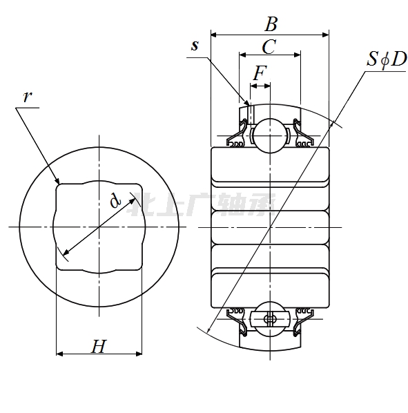 | 重型盤式軸承 - 方孔,球面外圈,1型 - 尺寸 | |