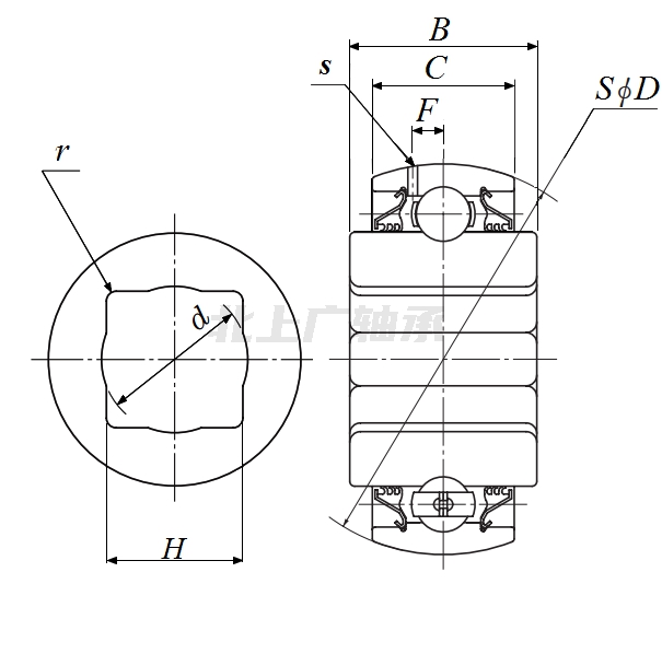 | 重型盤式軸承 - 方孔,球面外圈,2型 - 尺寸 | |