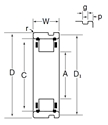 | 外圈帶滾針和保持架組件,Two 帶擋圈s & 帶卡環(huán) Groove in(英寸)[] 外圈O.D. - 尺寸 | |