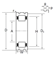 | 外圈w/ Cage and Rollers,帶雙肋 & Two 帶卡環 Groove in(英寸)[] 外圈O.D. - 尺寸 | |