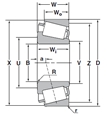| 圓錐滾子軸承外圈 - 英制和J系列 - 尺寸 | |