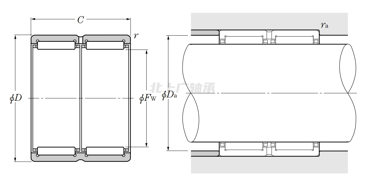 | 雙列機(jī)加工外圈滾針軸承,,不帶內(nèi)圈 - RNA69.R系列 - 尺寸 | |