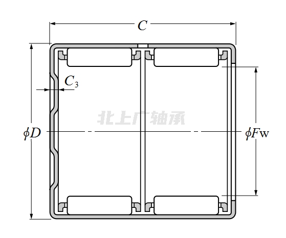 | 沖壓外圈滾針軸承 - 雙列BK型 - 尺寸 | |
