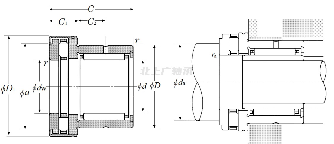 前綴列表:【NA:滾動體為滾針】【CV:英制尺寸的滿裝滾子滾輪軸承】