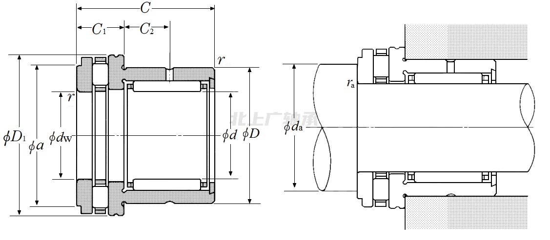 前綴列表:【NA:滾動體為滾針】【CV:英制尺寸的滿裝滾子滾輪軸承】,后綴列表:【LL:兩側(cè)有接觸式密封圈】