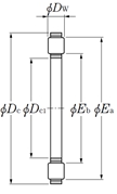 | 推力滾針和保持架組件 - K811,K812型 - 尺寸 | |