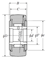 | 滾子從動件,軛式履帶滾子軸承,帶內圈,雙面密封,NATR型,球面外圈 - 尺寸 | |