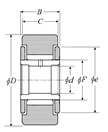| 滾子從動件,軛式履帶滾子軸承,帶內圈,NATV型,圓柱外圈 - 尺寸 | |