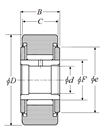 | 滾子從動件,軛式履帶滾子軸承,帶內圈,雙面密封,NATV型,圓柱外圈 - 尺寸 | |