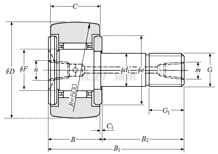 前綴列表:【KR:公制凸輪從動軸承(螺栓滾輪軸承)】【U:偏心螺柱】,后綴列表:【LL:兩側帶接觸式黑色合成橡膠密封件】