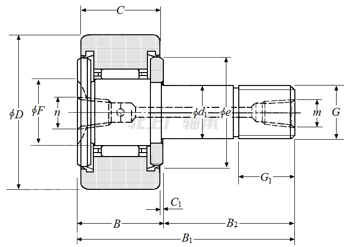 前綴列表:【KR:公制凸輪從動軸承(螺栓滾輪軸承)】【V:滿裝滾子型】,后綴列表:【F:新標準規格】【X:圓柱形外圈表面】