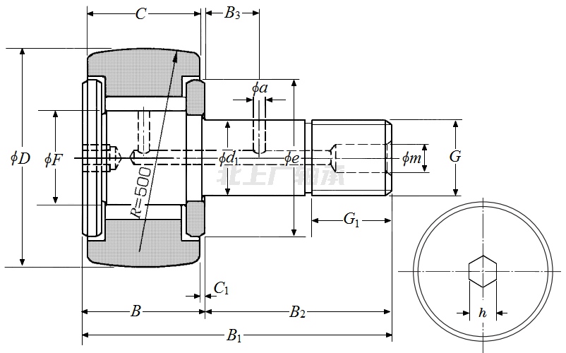 | 凸輪從動件,螺柱型履帶滾子軸承 - 球面外圈,KRV..H型 - 尺寸 | |