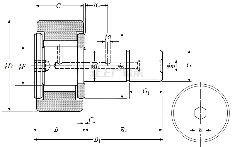 | 凸輪從動件,螺柱型履帶滾子軸承 - 圓柱外圈,KRV..H型 - 尺寸 | |