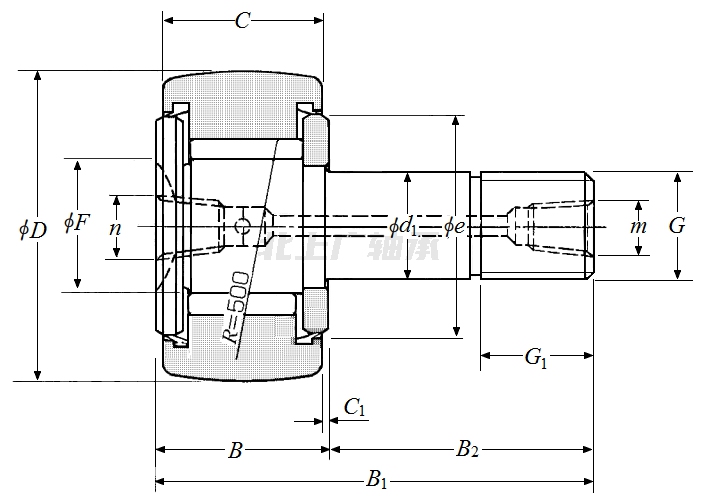 前綴列表:【NU:滾動體為雙列圓柱滾子,外圈兩側有擋邊】【KR:公制凸輪從動軸承(螺栓滾輪軸承)】,后綴列表:【X:圓柱形外圈表面】