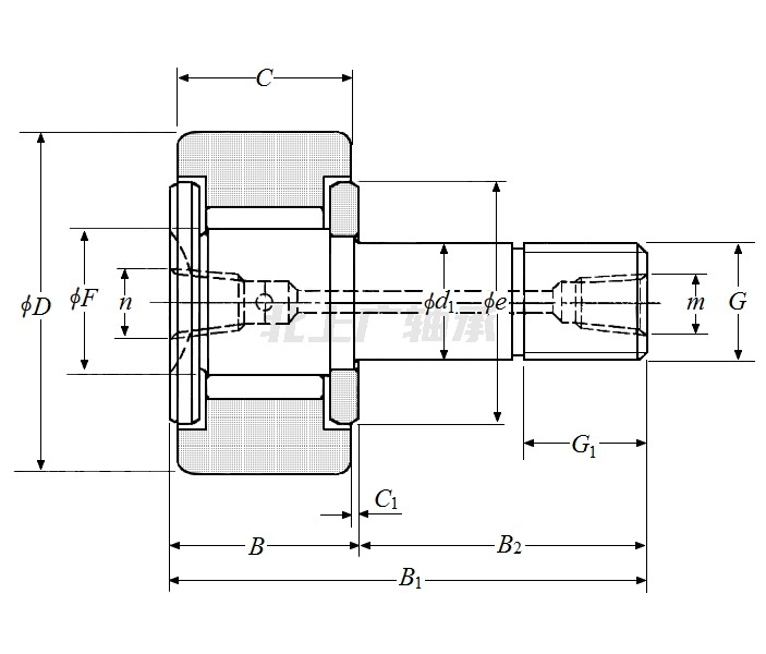 | 凸輪從動件,螺柱型履帶滾子軸承 - 圓柱外圈,KRVT型 - 尺寸 | |