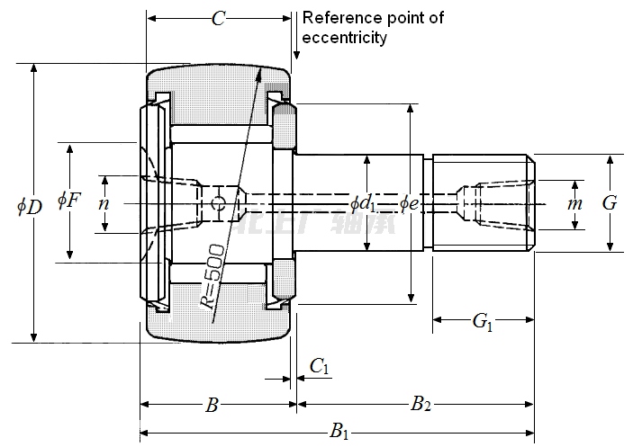 前綴列表:【NU:滾動體為雙列圓柱滾子,外圈兩側有擋邊】【KR:公制凸輪從動軸承(螺栓滾輪軸承)】【T:帶潤滑油孔】