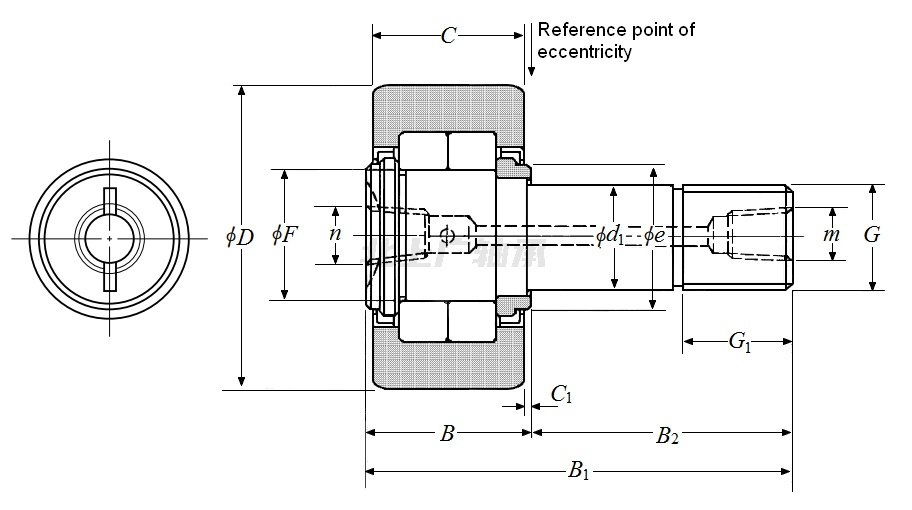 | 凸輪從動件,螺柱型履帶滾子軸承 - 圓柱外圈,NUKRU - 尺寸 | |