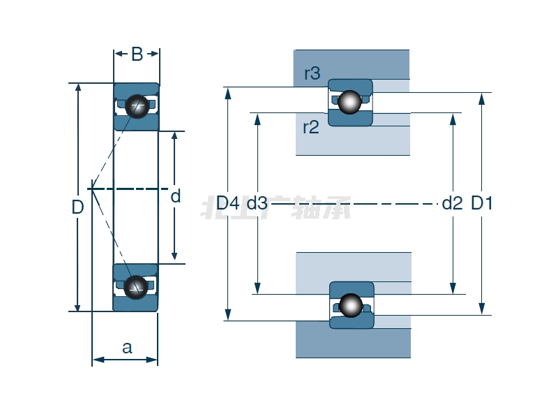 | 密封混合角接觸球軸承 - 接觸角 17°,高精度 - 尺寸 | |