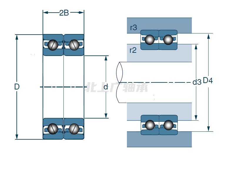 | 密封雙列角接觸球軸承,高精度 - 尺寸 | |