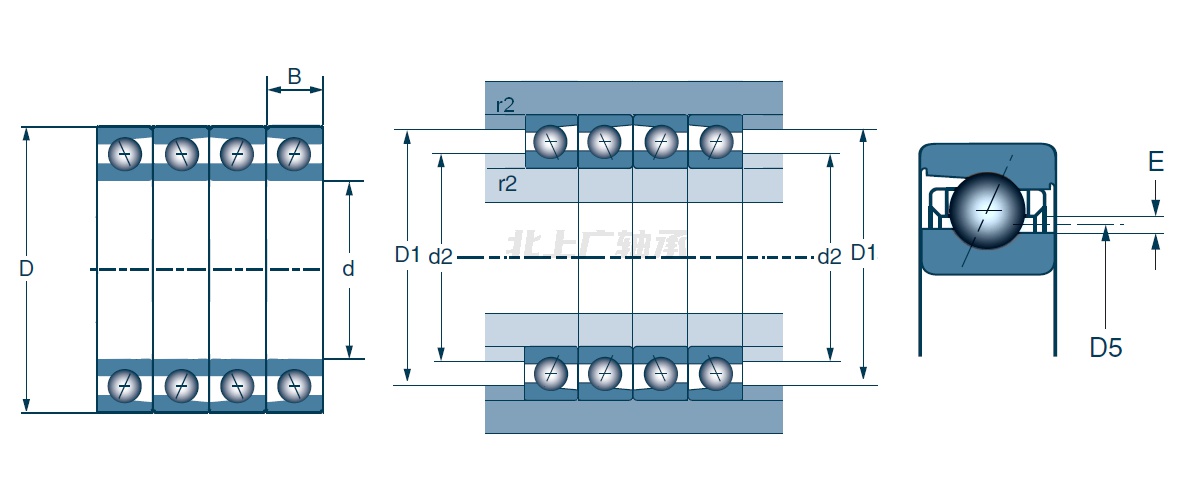 | 四列角接觸球軸承,機床用,Q25型 - 尺寸 | |