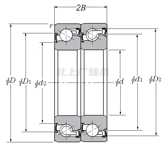| 滾珠絲杠用雙列角接觸推力球軸承 - 串聯配對,雙面密封,一列承受軸向載荷 - 尺寸 | |