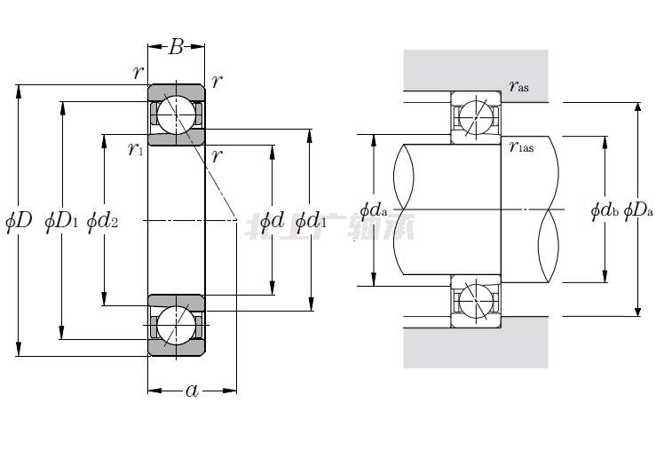 | 單列角接觸球軸承,電機和車床用 - 尺寸 | |