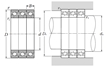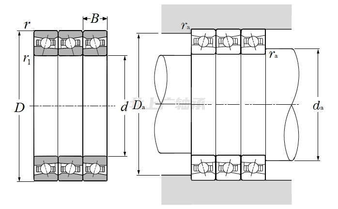 | 超高轉速多列角接觸球軸承, 背對背配對 - 尺寸 | |