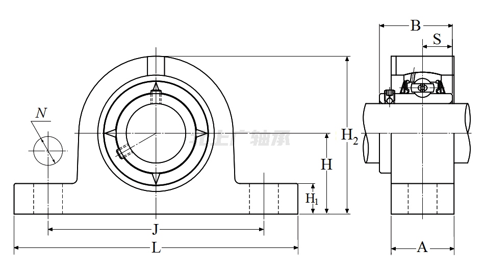 | 枕式軸承座,帶緊定螺釘,鋼制外殼,UCPG型 - 尺寸 | |