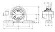 | 枕式軸承座,帶緊定螺釘,球墨鑄鐵外殼,UCPE型 - 尺寸 | |