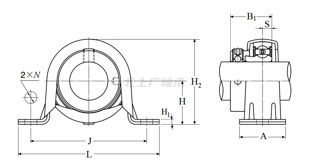前綴列表:【UEL:UL 系列外球面球軸承 + EL 偏心套圈】【H:高軸心】【P:枕型立式軸承座】,后綴列表:【D1:帶潤滑油孔】