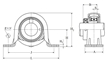 | 枕式軸承座,帶偏心鎖環(huán),壓制鋼外殼,AELRPP型 - 尺寸 | |