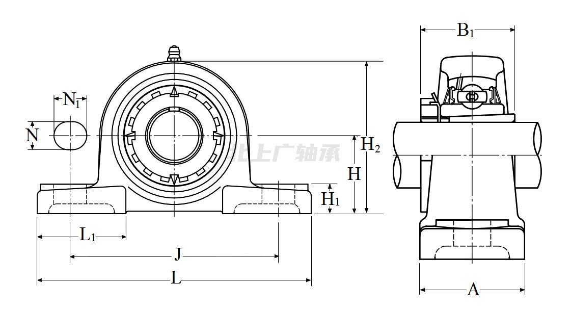 北上廣(廣州)有限公司是NTN軸承授權(quán)代理商,經(jīng)銷全品類NTN軸承,NTN UKP205D1 (When used with HE2305)軸承屬于【NTN軸承 - 軸承座 - 標準型軸承座 - 帶緊定襯套 - UKP型】,基本描述為:Item # UKP205D1(附件型號:HE2305)枕式軸承座,帶緊定套,鑄造外殼,UKP型。