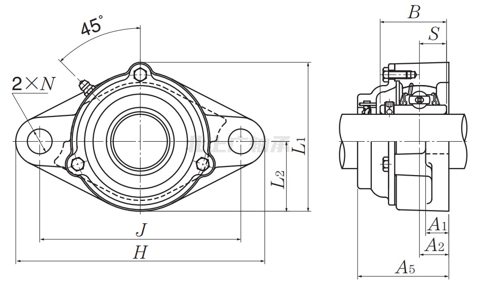 | 類型 | 雙螺栓菱形法蘭式軸承座 |