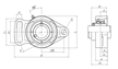 | 雙螺栓菱形法蘭式軸承座,鑄造外殼,帶緊定螺釘,UCFA型 - 尺寸 | |