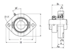 | 雙螺栓菱形法蘭式軸承座,鑄造外殼,帶偏心鎖環,AELFD型 - 尺寸 | |