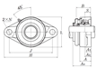 | 雙螺栓菱形法蘭式軸承座,帶緊定螺釘,壓制鋼防塵蓋,開式,UCFL型 - 尺寸 | |