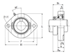 | 雙螺栓菱形法蘭式軸承座,鑄造外殼,帶偏心鎖環(huán),JELFD型 - 尺寸 | |