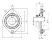 | 雙螺栓菱形法蘭式軸承座,壓制鋼外殼,帶偏心鎖環,JELPFL型 - 尺寸 | |